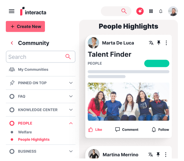 Interacta supports quick interactions between colleagues, as well as structured engagement programs.