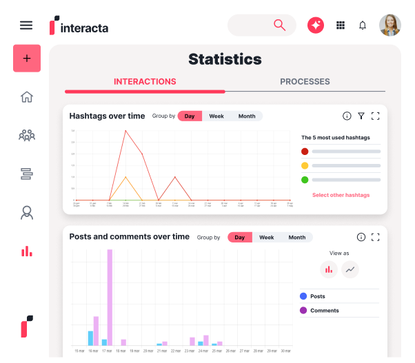 Find out who reads your content and evaluate its impact in the company. In Interacta, each interaction generates a metric that helps you evaluate the effectiveness of your communication initiatives.