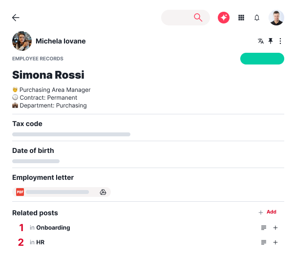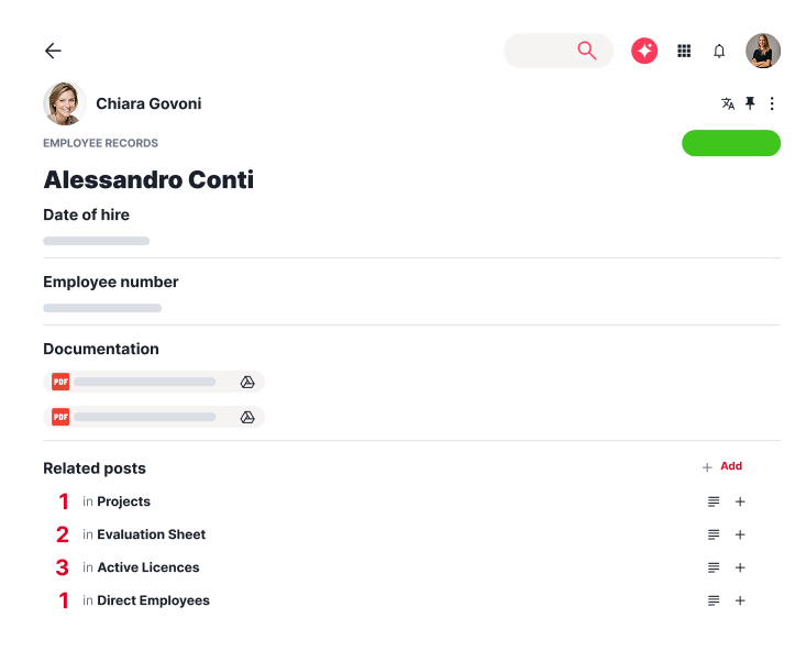 The Post Picker feature allows you to retrieve personal data wherever you need it, for example in posts or workflows. This means that information is transferred without duplication and is always up to date.