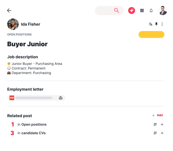 In one place, you can monitor the CVs received and the candidates' position in the recruitment process.